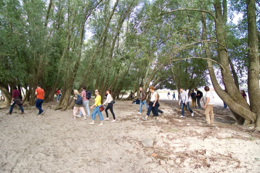 Ook dit jaar was er op het festival weer een mooie mix van theater, dans, literatuur, muziek, kunst en natuurwandelingen. Hoewel de locaties nu op kortere afstand zijn, blijft de fiets een onmisbaar onderdeel. En een goede planning, wil je het maximale er uit halen. Een planning die je pas op de valreep kunt maken, gezien de last-minute wijzigingen die in het programma aangebracht worden. En soms moet je je door de omstandigheden laten leiden: wat is er het dichtste in de buurt, voor we volgende voorstelling kunnen halen? Dit brengt je naar verrassende optredens op, voor velen, onbekende, maar fraaie locaties: zoals Wordbites op Landgoed Doornik en Goldsmith (die ter plekke aankondigde zijn artiestennaam te wijzigen in Kinsmith) in het Sprokkelbos. Of struinend langs de Waal tussen de dansers en blazers van Buro Nieuw Perspectief.