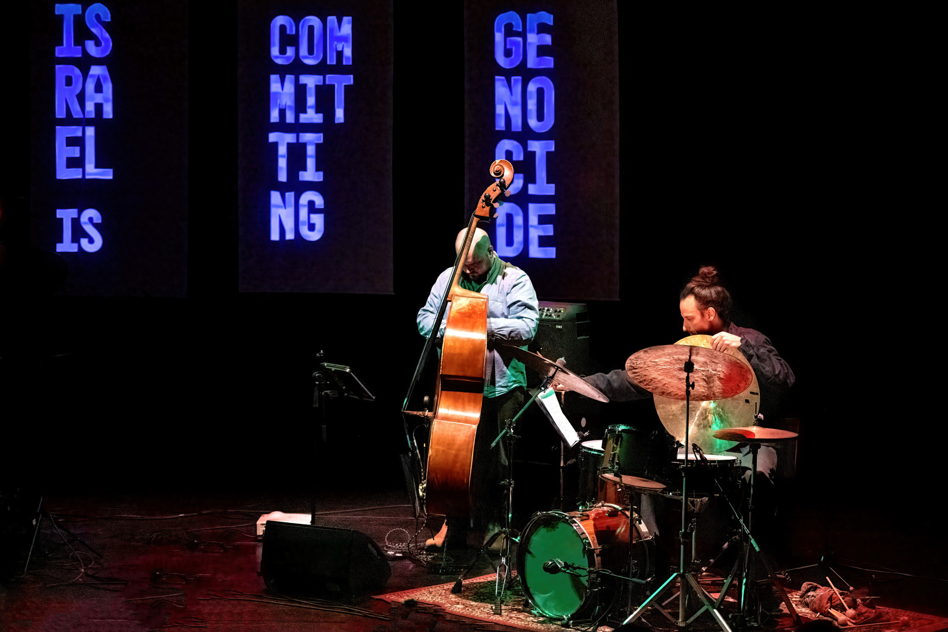 Het concert ontvouwt zich als een audiovisuele totaalervaring waarin beeld, geluid en digitale cultuur naadloos samensmelten. Invloeden uit klassiek, jazz en hiphop lopen door elkaar, terwijl nieuwsfragmenten, memes en spraaksamples onderdeel worden van het muzikale palet. In Gaza-speeches bijvoorbeeld verweven piano, bas en drums zich met live-elektronica, visuals en interactieve technologie. Af en toe klinkt het vertrouwde geluid van een traditioneel pianotrio, om vervolgens weer organisch op te lossen in de digitale laag die eromheen cirkelt.