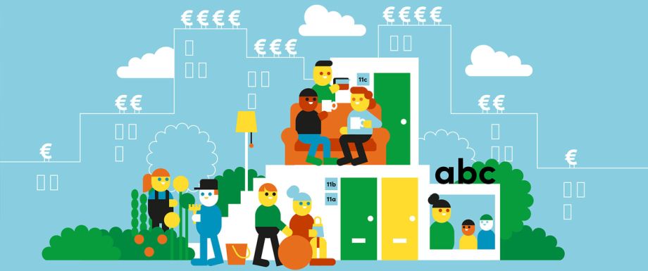 Geen corporatie maar coöperatie Een coöperatieve woonvorm gaat over de vraag ‘hoe willen wij in de toekomst wonen?’ in plaats van ‘hoe wil ík wonen?’. Een coöperatie wordt opgericht door een groep mensen die een woonbehoefte delen, samen passende woningen bouwen en die tegen kostprijs verhuren aan haar leden. Omdat de woningen eigendom zijn van de coöperatie, blijven ze betaalbaar. Het draait dus niet om individueel woonbezit en voorkomt dat er een nieuwe generatie rijken ontstaat: na aflossing van de hypotheek blijft de gebruiker huur betalen, geld dat ten goede komt aan nieuwe woningbouwprojecten.