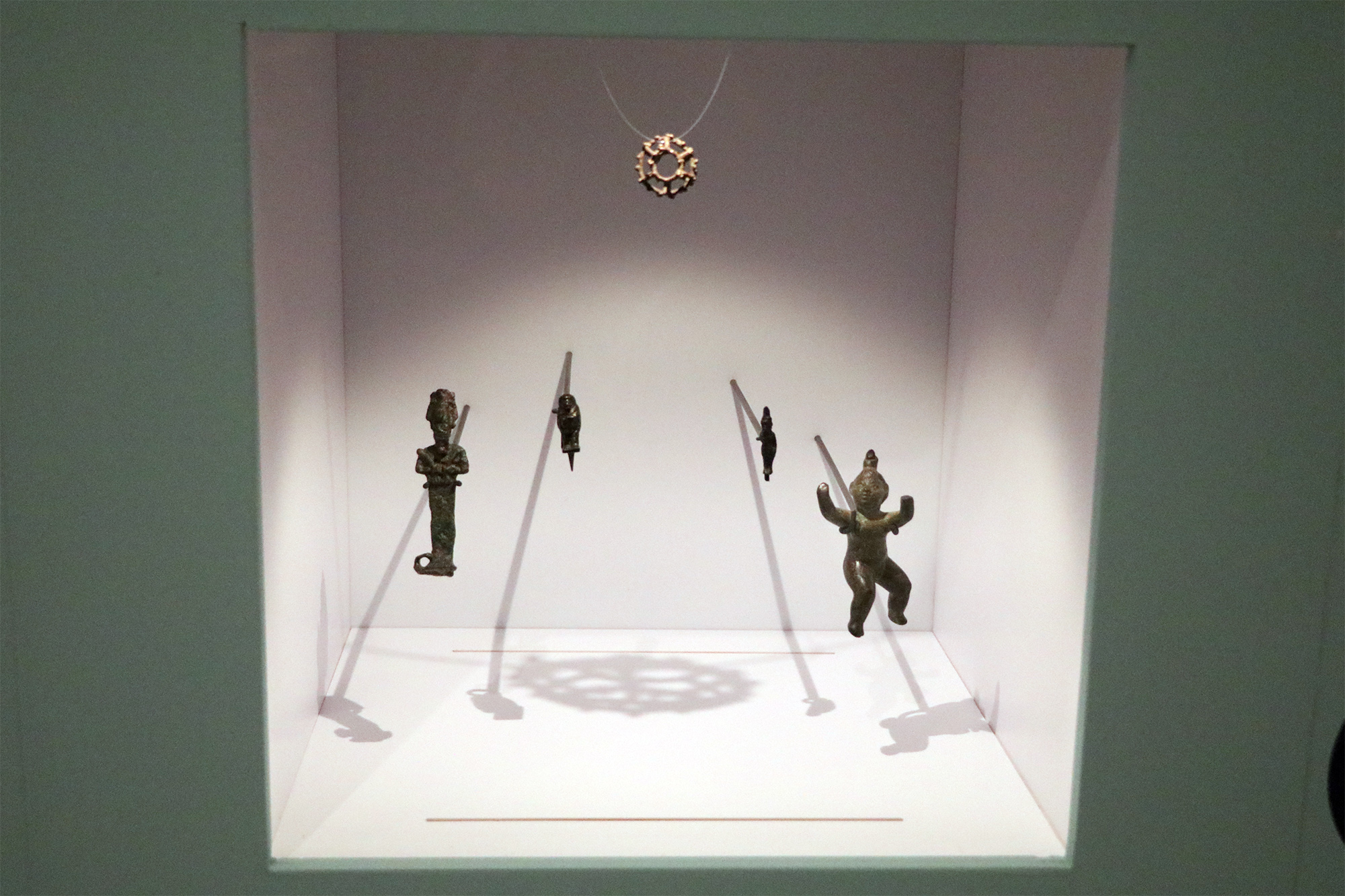 We zien ook kleine voorwerpen die aan thuis doen denken: een tweeduizend jaar oude gesp, een paardenbit, een amulet uit een verafgelegen streek.
