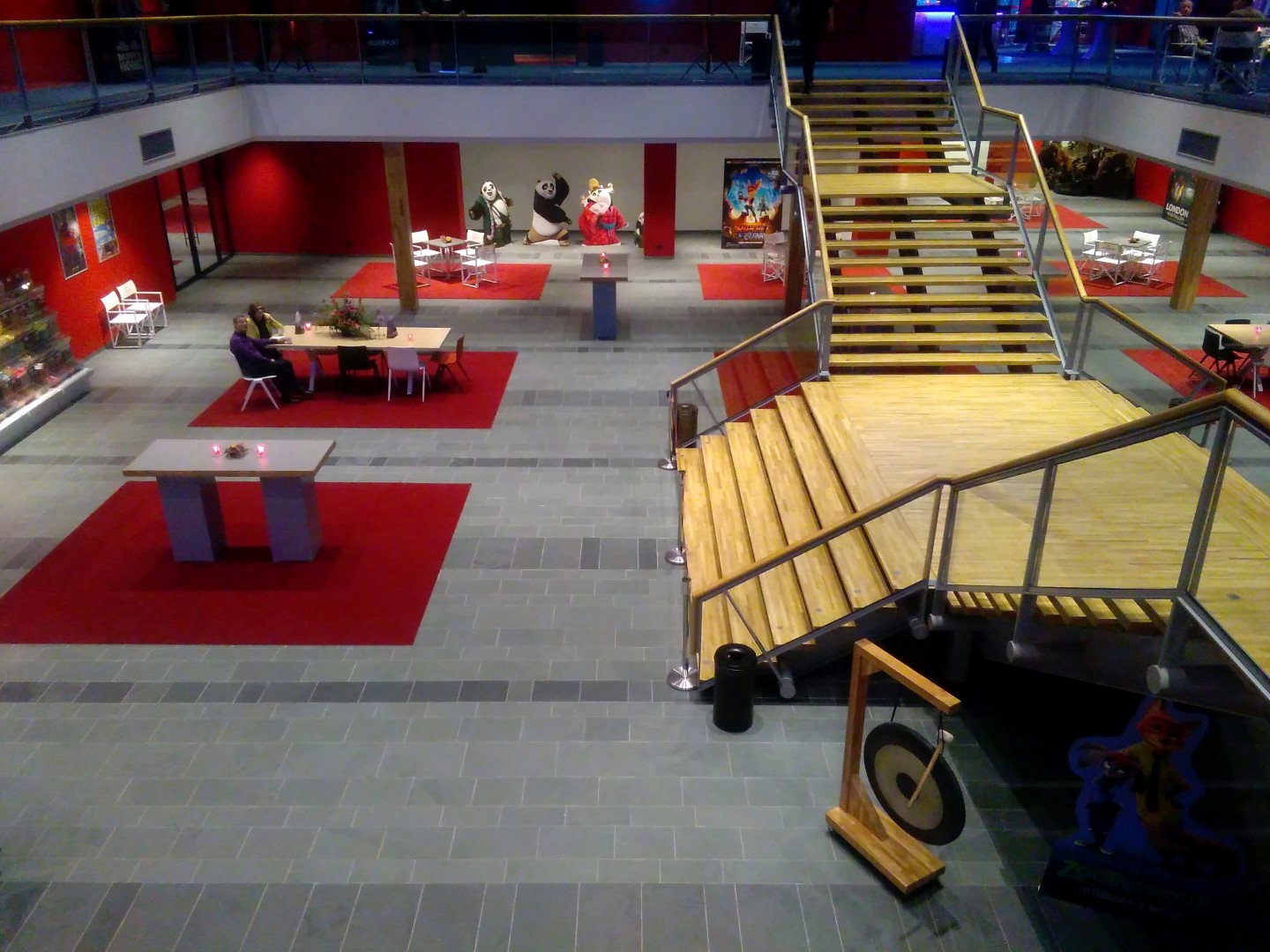 Na de film kun je nog naborrelen, maar het loopt al redelijk snel leeg en dat snap ik ook wel. De zalen zijn basic, maar prima, ruime stoelen met voldoende beenruimte. Het personeel is gastvrij en vriendelijk. Wat ik echter mis in de foyers zijn sfeervolle zitplaatsen. De ruimte leent zich er perfect voor. Ik vind het er kaal en ongezellig. Hier mag wat mij betreft nog wat aan gedaan worden. De meubels zijn niet in verhouding met de grote ruimte. Erg jammer, want daardoor blijf je er ook niet nog gezellig even zitten, als je dat al ergens zou kunnen. Maar misschien is dit ook wel helemaal niet de bedoeling van CineMec? Ik vind het in ieder geval een gemiste kans. Want in de omgeving zit verder geen horeca en het is altijd wel zo fijn om voor of na een (film)voorstelling even gezellig een drankje en eventueel een hapje te nuttigen. Vooral ook omdat het CineMec zo ver van het stadscentrum ligt. Je moet er toch speciaal naartoe. Met alleen maar een rood kleedje en hier en daar en wat tafels met wat stoelen creëer je geen sfeer. Hier is duidelijk op bezuinigd. Jammer. Maar wat ik begrijp zijn er nog plannen voor een paviljoen bij het water. Dit zou dan een mooie aanvulling zijn.