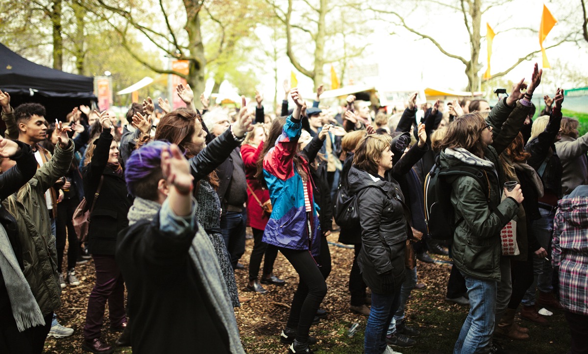 De zonnestralen lichten op terwijl de geur van regen frisheid verspreidt. In Hunnerpark is er een leuk klein festival gaande.
