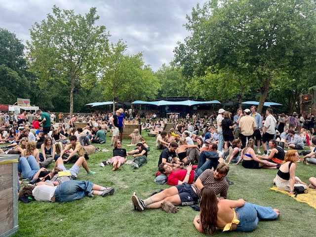 De Palestijnse vlag is goed vertegenwoordigd in het publiek. “This is not a war, not a conflict, this is a genocide,” zegt Levant op het podium. Zijn activisme voelt oprecht, niet ingestudeerd, en zijn boodschap landt bij het publiek – zonder dat het de vibe drukt. Integendeel: op het podium wordt thee gedronken, stoelen vliegen later door de lucht en tegen het eind komt zelfs Levants vader nog een nummer meedoen op het podium. Het is intens, grappig, sexy en politiek tegelijk. Voor ons het vetste optreden van DTRH tot nu toe! Tijd om de beentjes even rust te geven.