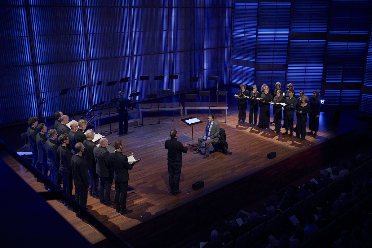 Het is zaterdagavond 25 november. In Concertgebouw De Vereeniging wordt ‘Het Proces’ (1925) van Franz Kafka uitgevoerd. De uitvoerenden zijn het vierentwintig leden tellende koor Capella Amsterdam onder leiding van Daniel Reuss, en de acteurs Roeland Fernhout (Josef K.) en Anne-Chris Schulting (personages die K. belagen en voice-over). De regie is in handen van Nina Spijkers. Toneel en zang wisselen elkaar af. Het gezelschap maakt gebruik van zowel het podium als de zaal.