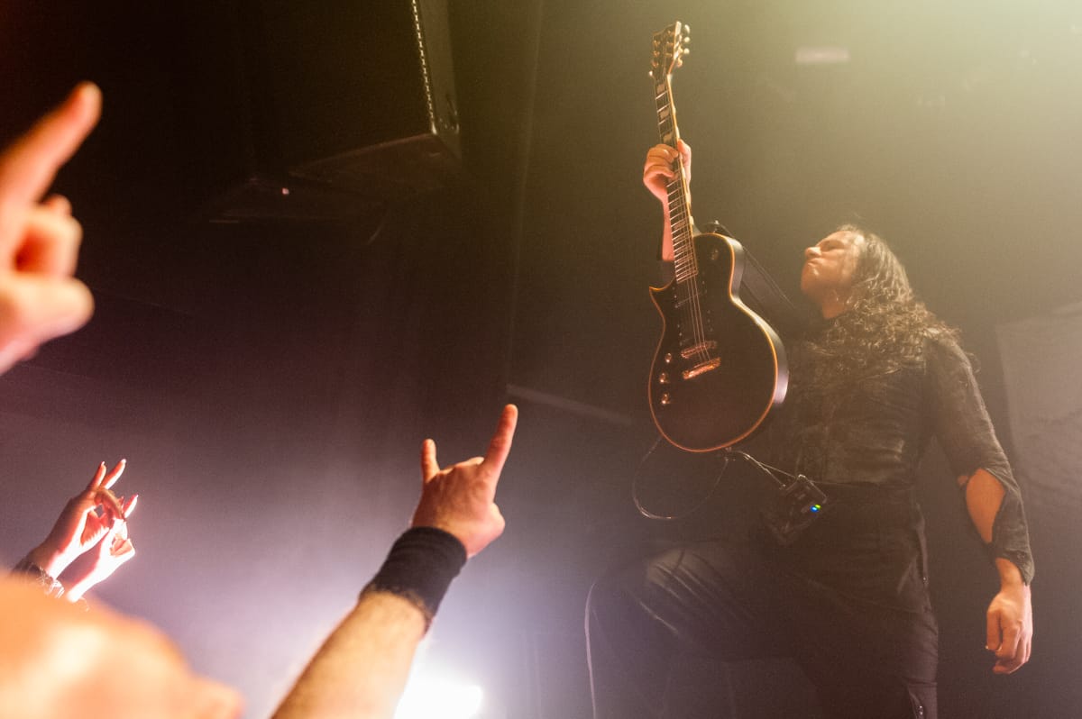 Het voorprogramma bestaat vanavond uit twee bands, waardoor de avond al vroeg begint. Gevolg is dat ik van het eerste bandje, het Griekse Odious, slechts de laatste strofen van het laatste nummer mee krijg. Te weinig om iets zinnigs te kunnen zeggen. Maar mooie foto’s zijn er wel.