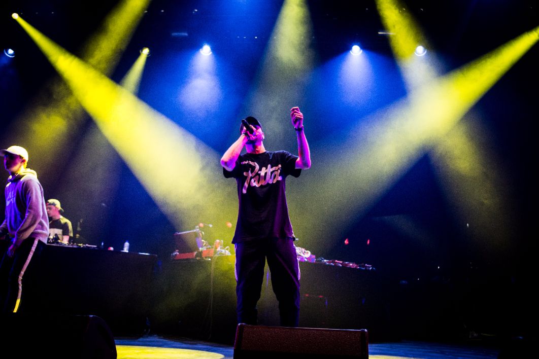 Dat is een weer een line uit het nummer Uggelie waar Freez een mooie guest performance op heeft. Het hele optreden gaat moeiteloos in elkaar over. Klassiekers als Strik je veter, breek de tent af en Hoedenplak komen ook voorbij. Het publiek is wild, er ontstaan moshpits en ik krijg af en toe bier over me heen. Het is heerlijk. Laat ik deze recensie eindigen met een stuk rap uit het nummer Dit Is Wat Ik Weet. Het is een goede samenvatting van de avond en van het leven: