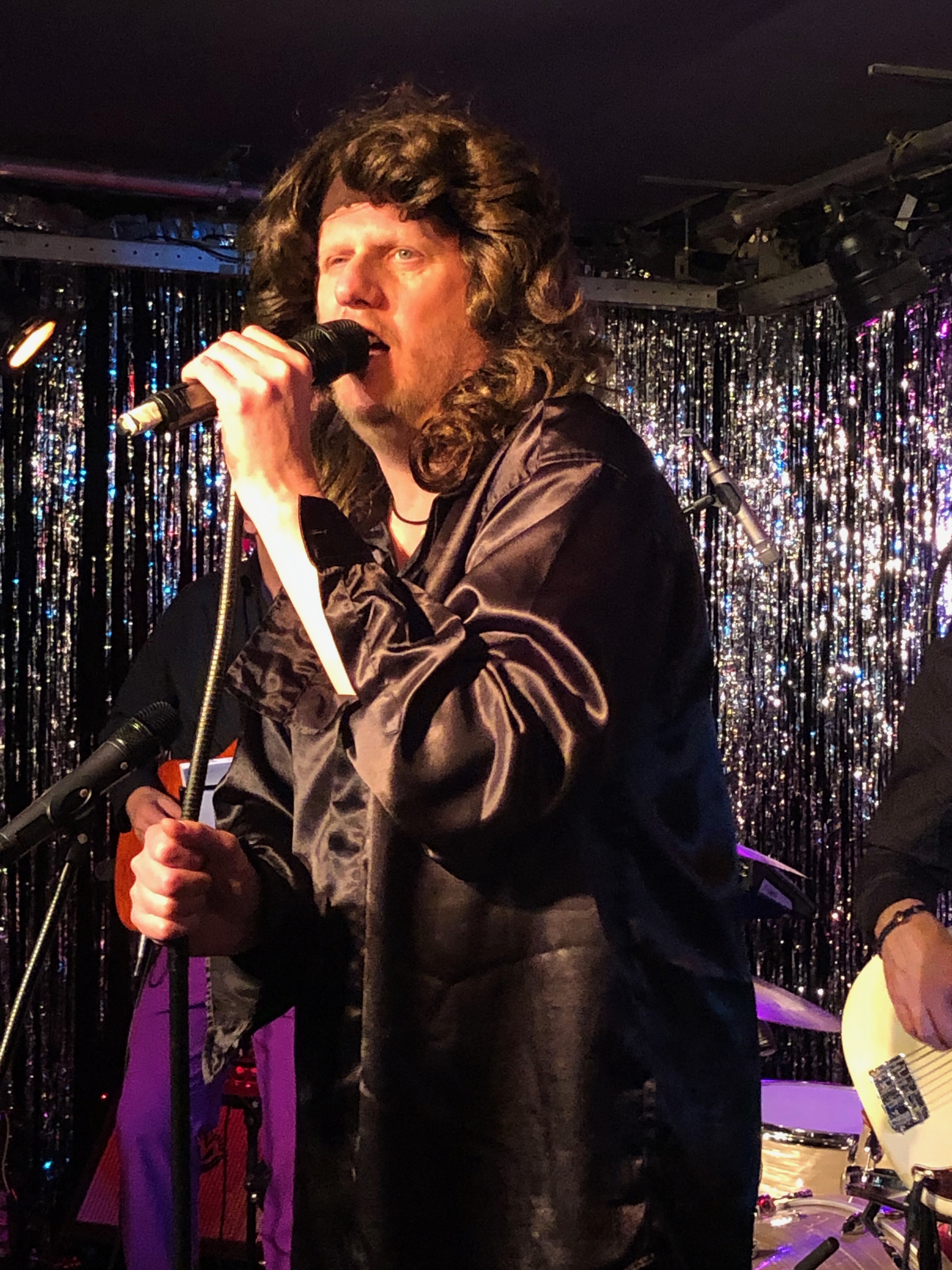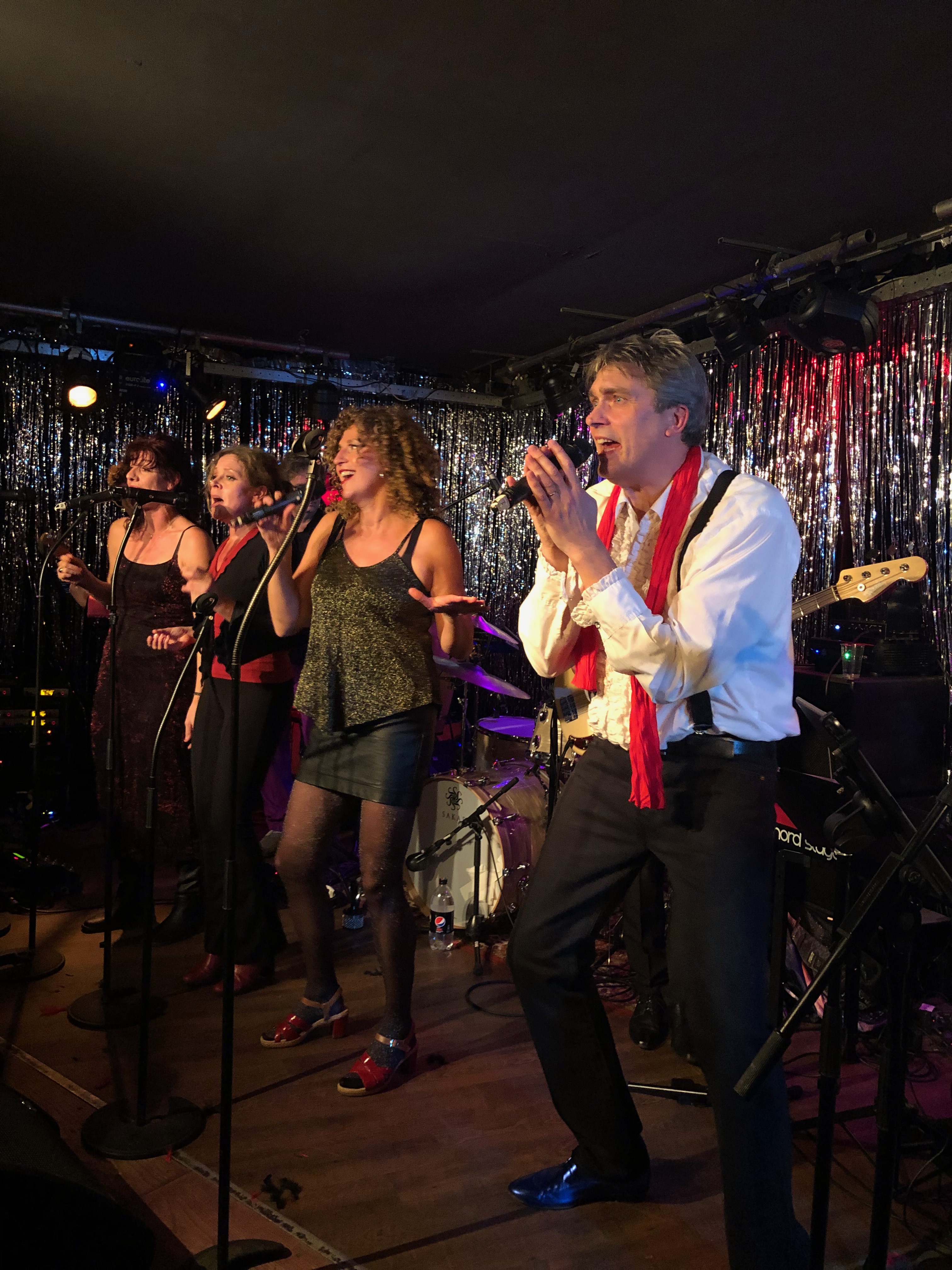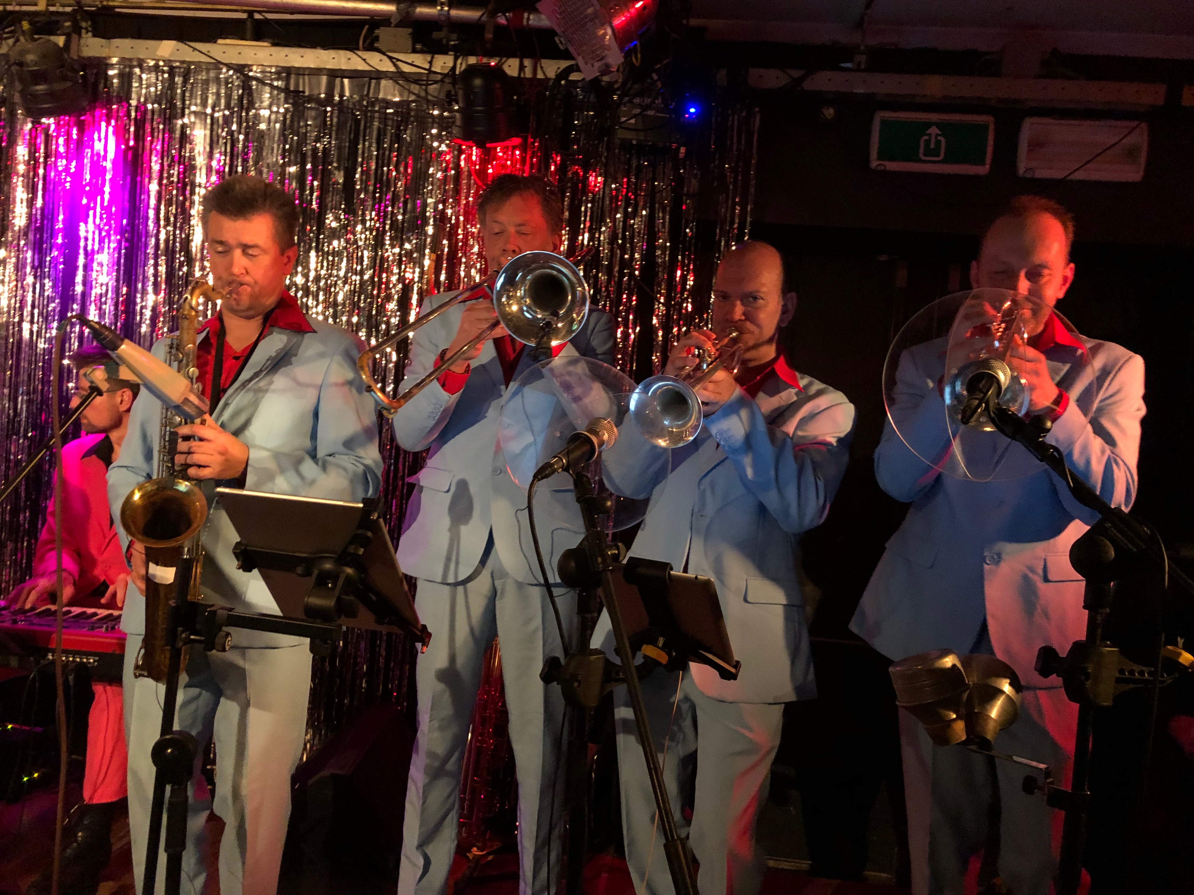 De Trianon House band bestaat uit maar liefst tien personen aangevuld met, voor de gelegenheid, vijftien zangers en zangeressen. Uit de Top2000 komen ongeveer 35 nummers voorbij in drie sets. Met zoveel omkleden heb je wel even pauze nodig. Wie wel eens in het zaaltje achterin Café Trianon is geweest, kent de omvang van het podium. Knap dat je daar twee gitaristen, een drummer, een toetsenist, vier blazers en een wisselende samenstelling van vocalisten op kwijt kunt. Volle bak dus, op het podium en in de zaal.