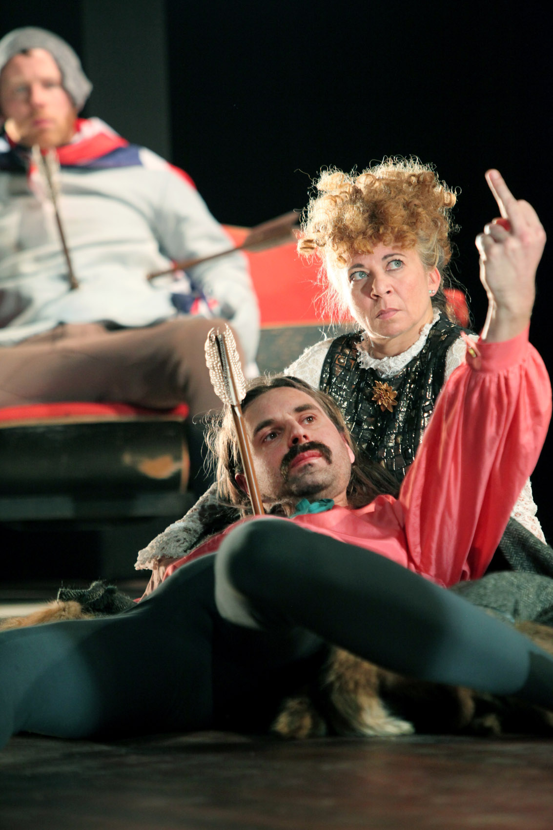 Toneelgroep Oostpool blaast sprookjes nieuw leven in (zie ook: Romeo en Julia) en maakt daarbij een mooie mix tussen de middeleeuwse oorsprong en de moderne actualiteit. Robin Hood en de zijnen (of eigenlijk vooral Justice, in een geweldige rol van Gillis Biesheuvel) hebben het inmiddels niet alleen over de gemene koning Jan, maar ook over Twitter, kapitalisme, Occupy en Walt Disney (“Fuck Walt Disney! Wij vertellen jullie het echte verhaal”). Het stuk lijkt op een uit de hand gelopen verkiezingsdebat: ben je voor de opportunistische koning, voor de idealisten die vrijheid willen, voor de boze burger die gewoon eens een keertje rust wil, en dan maar wat minder vrijheid, of voor de middenmoot die vooral compromissen wil sluiten? Voor Robin Hood is het in elk geval moeilijk stemmen: hij wil het liefst onder een dekentje op de bank met zijn geliefde.